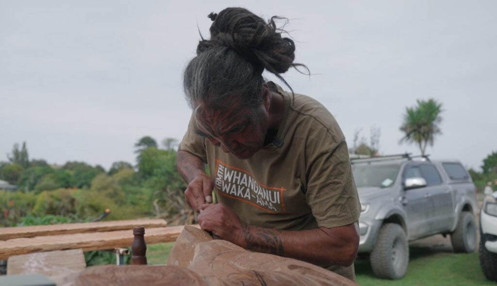 “At the moment we’re just keeping ourselves busy in the carving shed, upholding the vision of our space, the vision of our marae and that vision is to maintain our Whanganui carving style and our narratives,” carver Te Ururangi Rowe says.