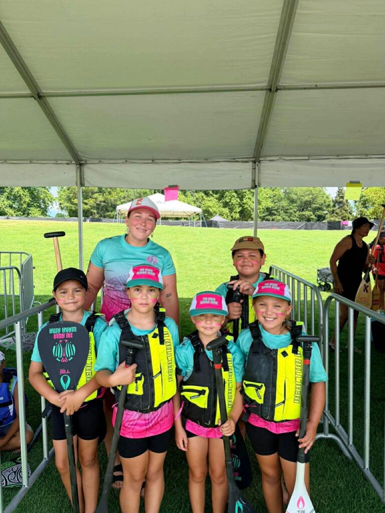 Although a new club, Tai Awa Waka Ama is led by an experienced paddling and coaching team and has prioritised junior and single waka development in its first year. Initially planning to take just two teams to Nationals, strong whānau support saw the club take six teams – highlighting the demand for accessible waka ama opportunities in Whanganui.