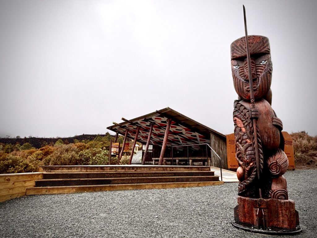 The carved pou whenua Te Ririo, which stands at the start of the Tongariro Alpine Crossing, had been charred to its core and was still smouldering on Monday.